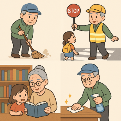 학교, 공공기관 등에서 간단한 청소나 정리를 돕는 일입니다. 체력적으로 무리가 가지 않게 시간 조절이 가능한 경우가 많습니다.