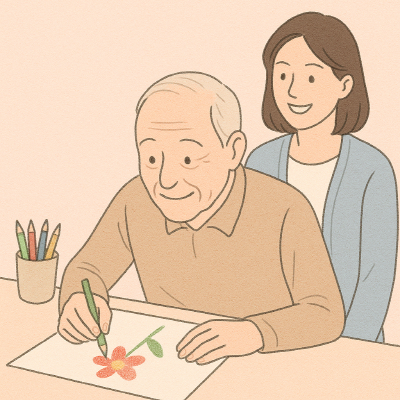 노인미술치료사는 미술이라는 비언어적 매체를 통해 어르신들의 감정 표현을 돕고,