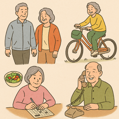 치매 예방은 지금부터 실천할 수 있습니다. 운동, 식단, 수면, 두뇌 활동, 사회적 관계까지.