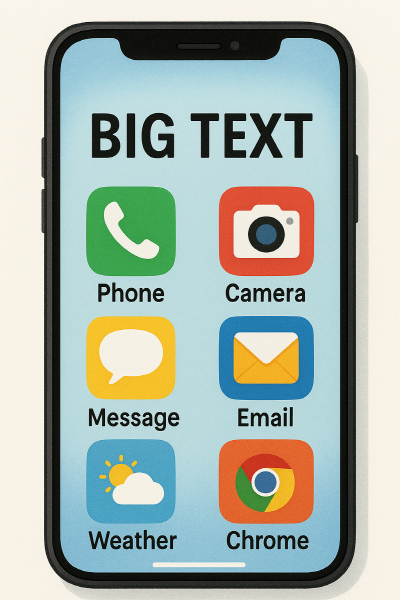 - [설정] → [접근성] → [글자 크기] → ‘크게’로 이동.